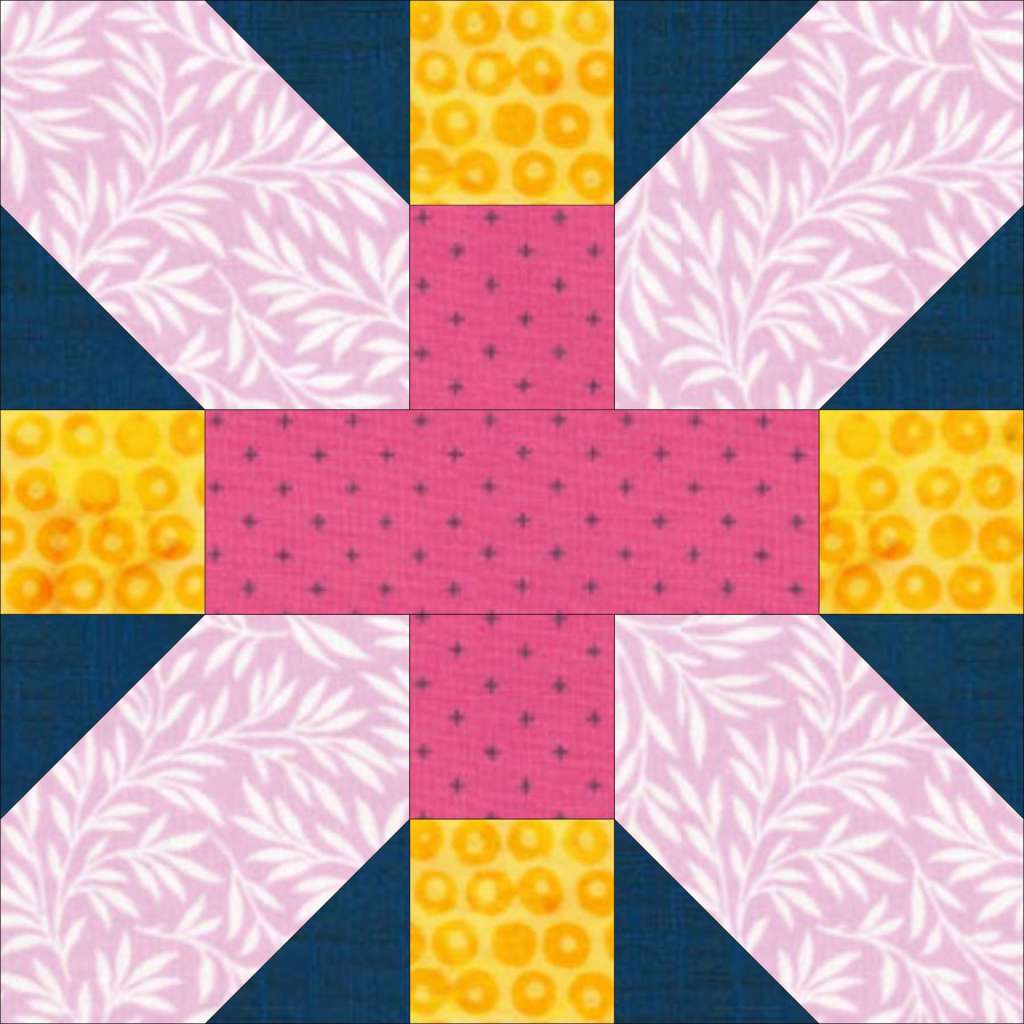 Like many blocks, this one goes by various names including Japanese X Block, Plus and X Block, and X Plus Block. Stash Bandit. and Scissortail Quilting offer tutorials and more information about this scrap friendly block. I am learning how to draw blocks in EQ8, so I took advantage of the opportunity to practice: