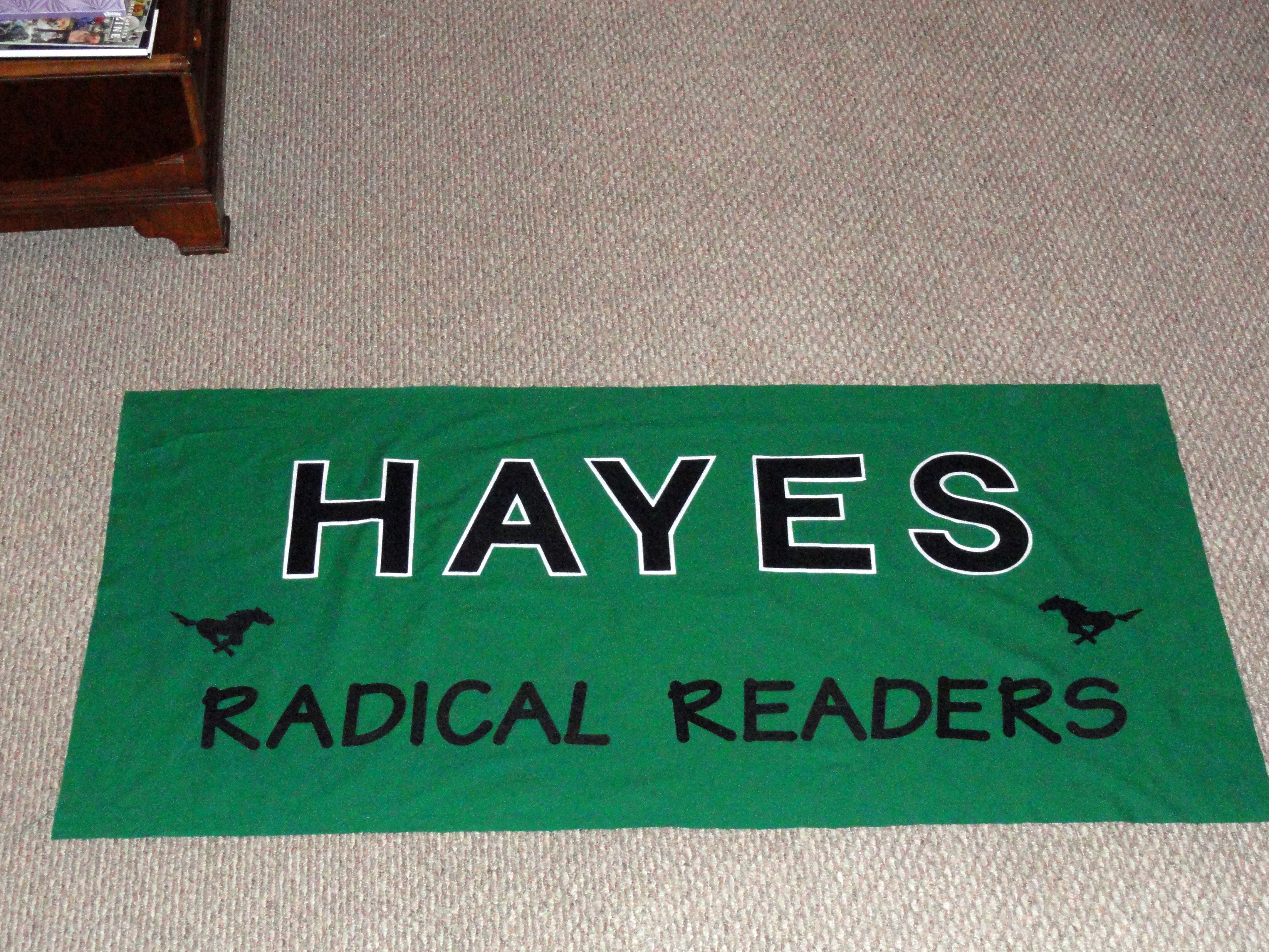 Everyone was thrilled with the banner. Final tally: 6 hours of time plus $40 in materials (not including hanging hardware). Fortunately, I was able to fuse and cut the letters during my planning time @ work.