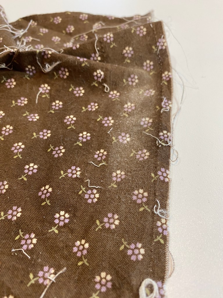I missed a spot. There it was in all of its glory just mocking me. I discovered it as I did my final thread check. I was so upset! I tried to blot the quarter-size stain, gently wash it, soak it…ended up scrubbing with a nail brush and Dr. Bonner’s. That got rid of the stain, but caused the fabric to pill and fade. The local quilt shop suggested I use a sweater shaver to get rid of the pilling, dampen with water and allow it to dry.