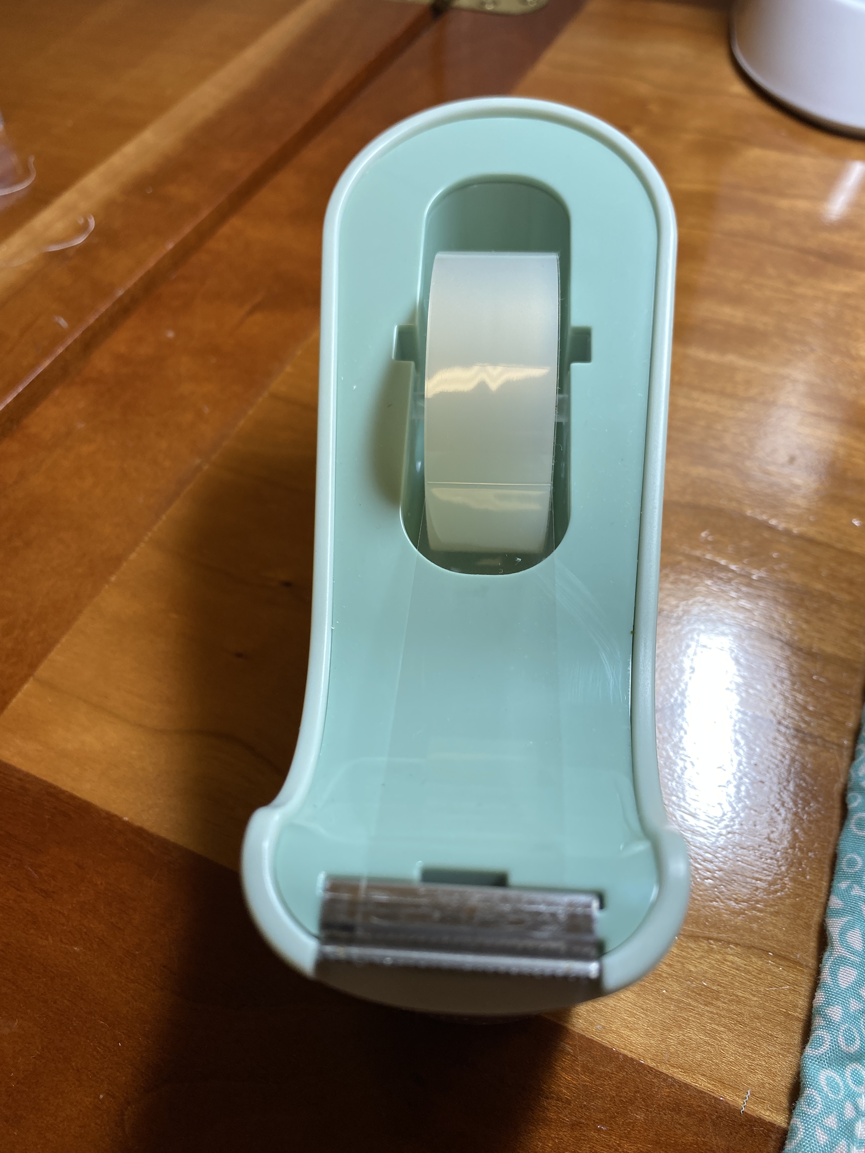 I learned about using tape from watching old Sewing with Nancy videos. Tape holds buttons in place while you try to get the button and fabric positioned under the foot. I get best results when using the 3/4″ wide clear/transparent tape (not the frosty/opaque/magic tape on the little roll). This stuff is so sticky that we use it to cover spine labels in the school library. You can sew through it just fine without messing up your sewing machine.
