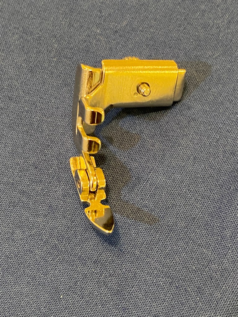 Thank goodness the t-shirt turned out to be a sweatshirt. It was made from a fairly stable knit fabric, making it easier to sew. Once I decided placement, it was a matter of gluestick/heat set/pin the applique in place and stitch around it. Even with all the fancy feet my Baby Lock Jubilant has, I listened to my inner voice that advised me to “borrow” the vintage zipper foot from my Featherweight accessory box. Low shank feet are universal and it worked like a charm. My coworker was very pleased with the finished result.