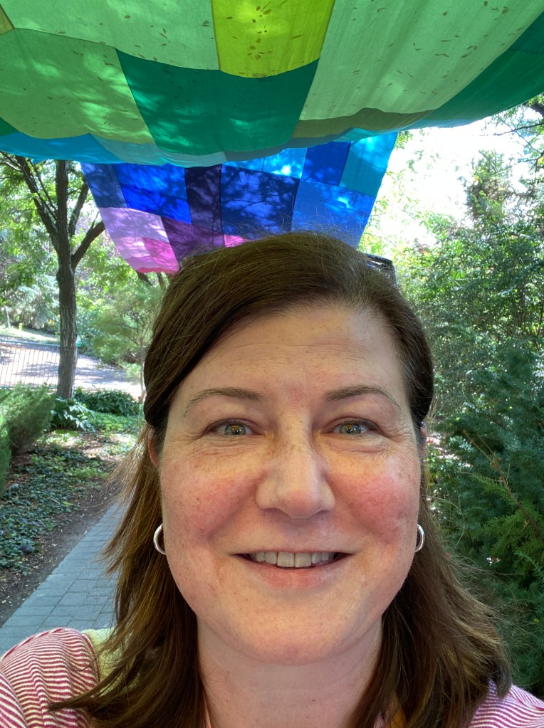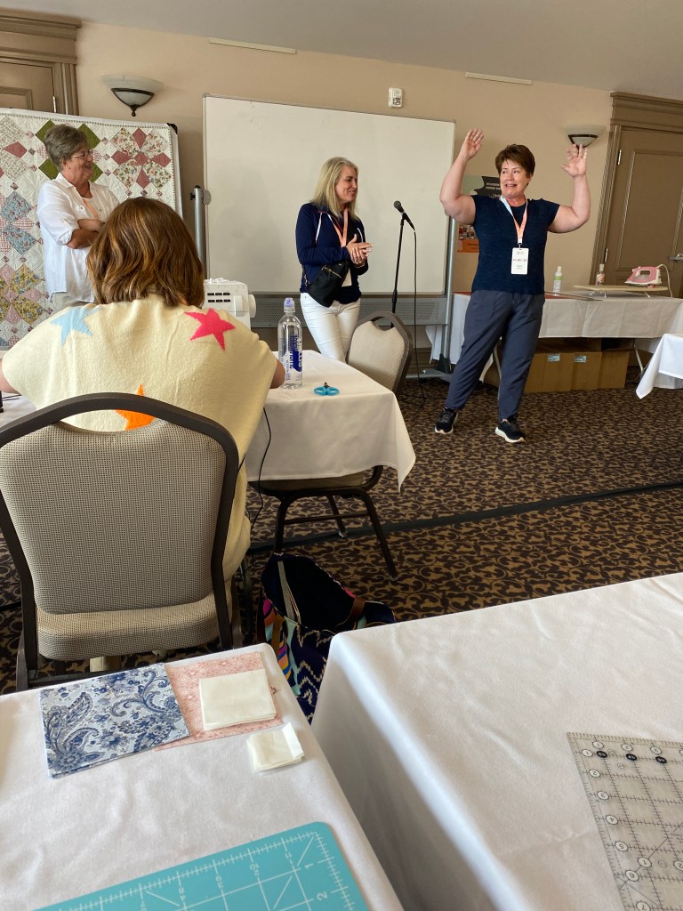 This was such a fun trip! I took many, many more pictures of the gardens, quilts and wide open landscapes around me than I did of what was going on in my classes. My goal was to take two photos per class – one of the instructor teaching and one of my completed block. I was so intent on getting the hang of sewing orange peel and quarter circle blocks in my last class that I didn’t take any pictures until I had completed three blocks. By then, class was over!