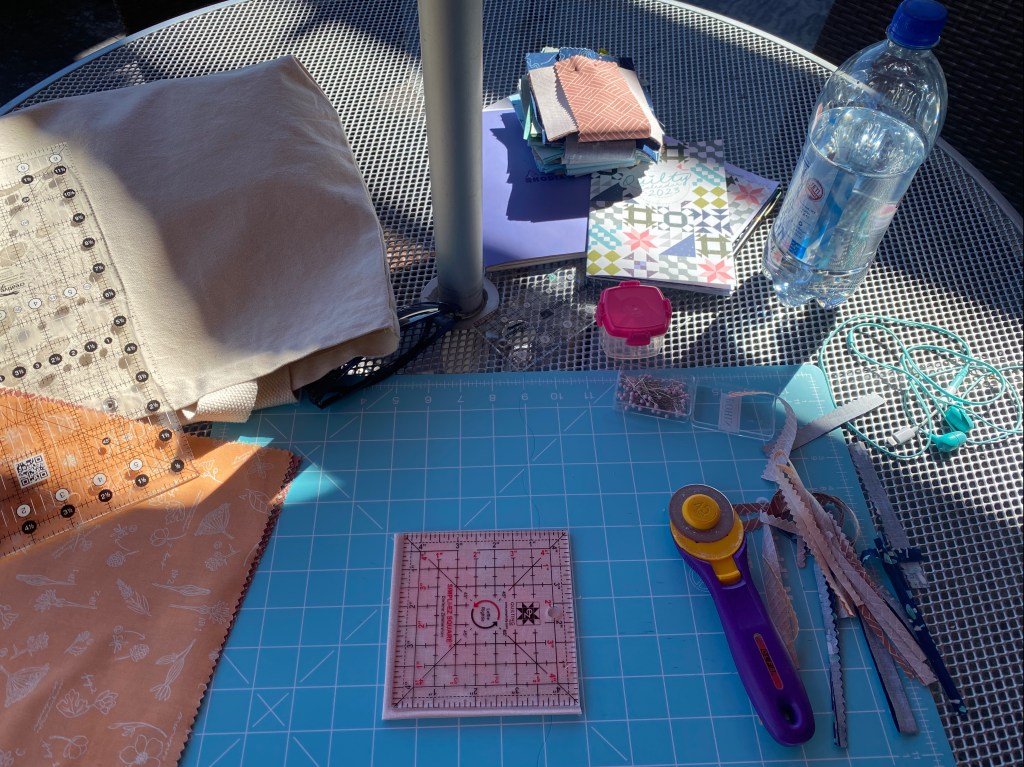 Blooming Stars: always make one block first to see if you like it before you cut the rest of the fabric in the kit, you really only need piecing thread in white/cream, beige/tan and med/dark gray.