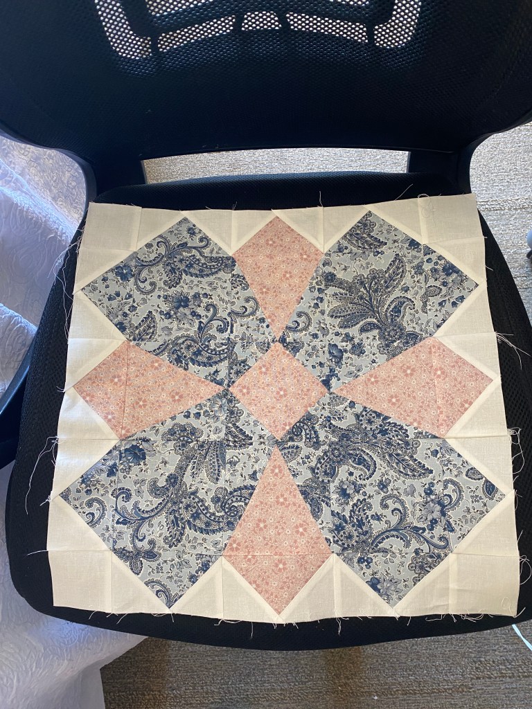 Whirly Blooms: press seams open when pattern uses lots of FG, HST and other pieced units, use a 1.8-2.0 stitch length, “marinate” background fabric only in heavy starch.