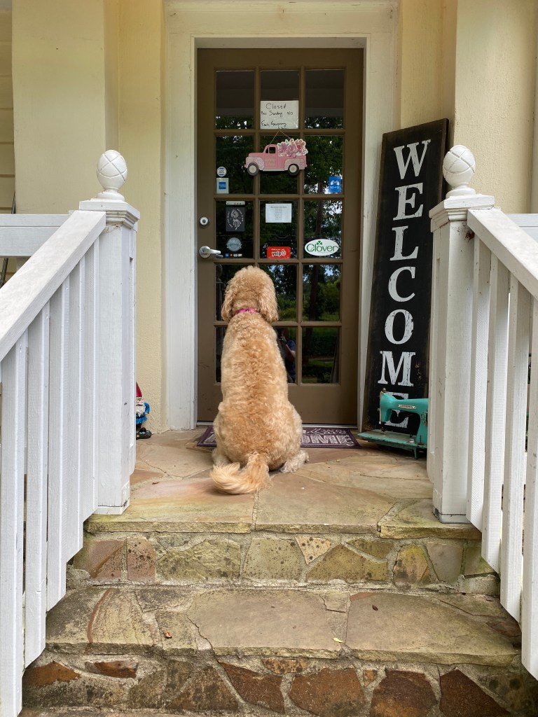 Ding! Text message from our local quilty home stating the shop lost its lease and is closing. Big sale now through Saturday. Wait-what? Sadie’s about to lose her quilt shop? She absolutely adores the owners and enjoys our biweekly visits. Hubs just reminded me I need to take Charlotte to redeem her gift certificate this Saturday. Now to text her mom.