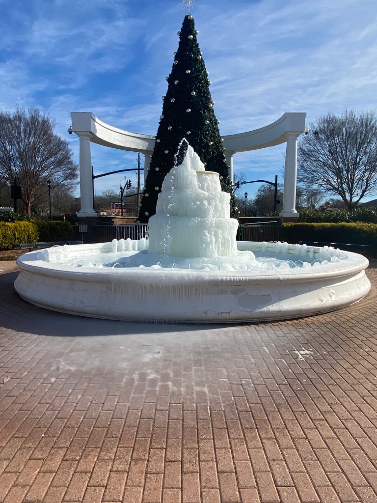 It was pretty surreal. We saw it starting to ice over when we were at dinner the night before. I went back the next morning to snap my photo. Totally unexpected given the local town had already capped all the water fountains in the city parks for the winter season.