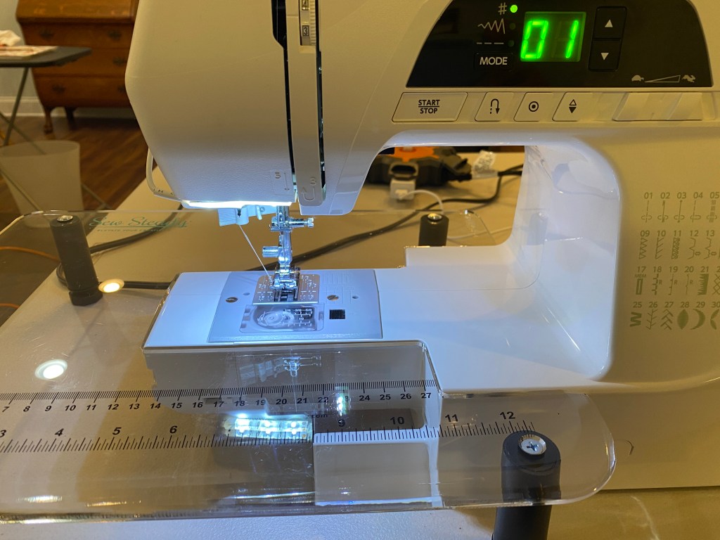 Bye-bye Bendable Bright Light! This dimmable LED kit purchased from Amazon fits my needs so much better. It’s about $10 and I only used 1 section of the light strip because I needed additional lighting over the needle area only. Of course, this would be a non-issue if sewing machine manufacturers would just install brighter lighting when the machines are made.