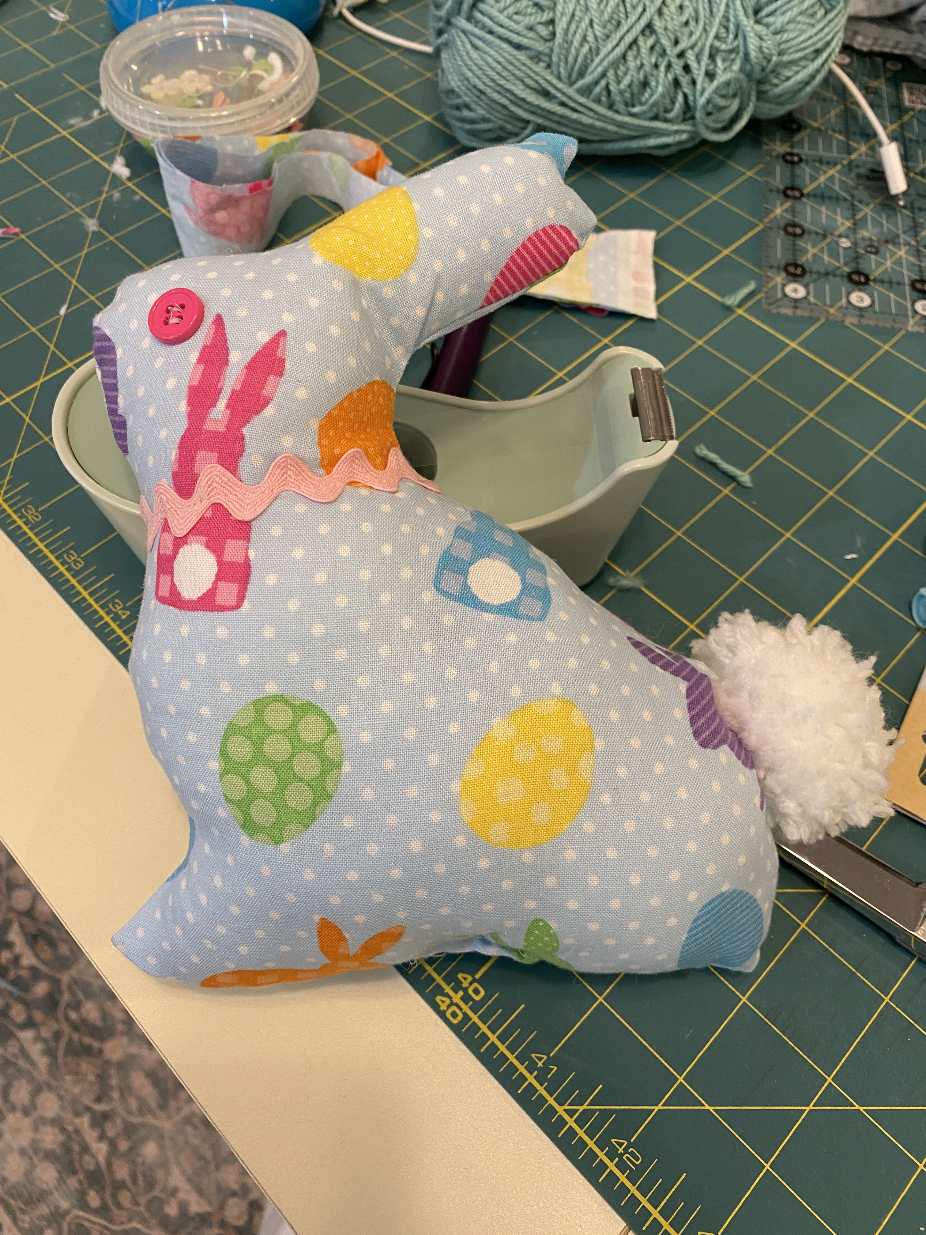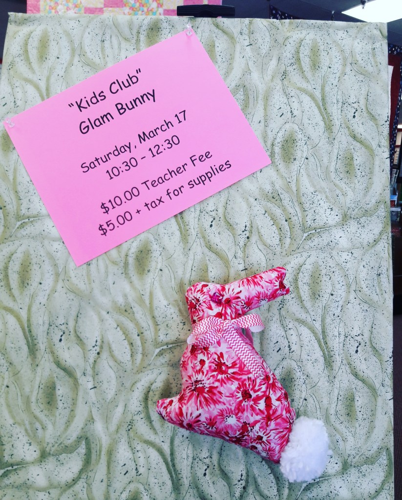 Spring break is this week, so I offered a bonus CraftLAB session on Wednesday afternoon. Both girls were on time and their parents were very thankful for a fun activity the girls could look forward to over Easter break. Yes, we made stuffed bunnies – a favorite quick project I drafted in 2017 for a kid’s class at Stitch N Quilt.
