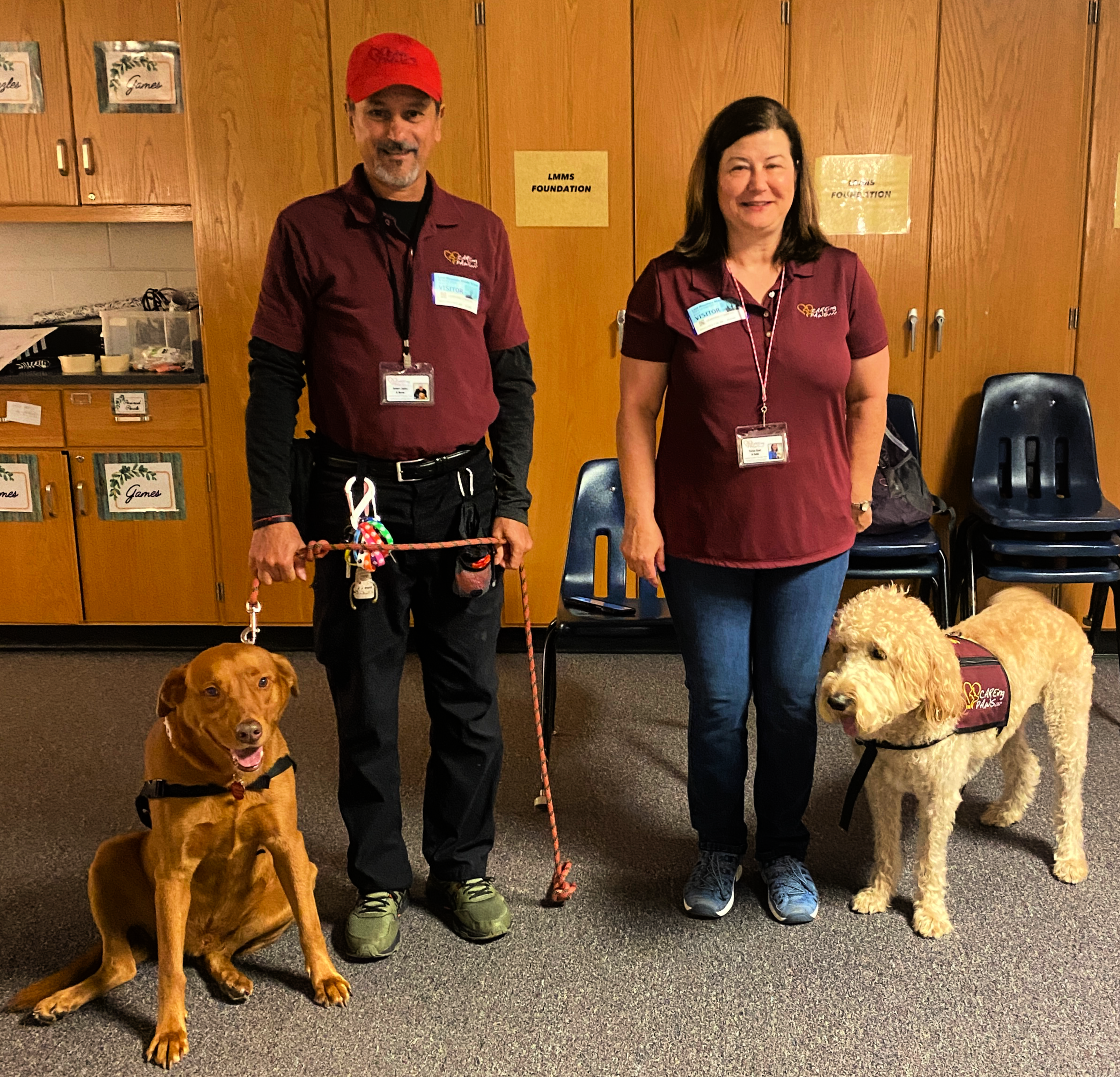 Therapy dog visit with Sadie’s bestie, Baron, at Lost Mountain Middle School at the end of March. We have many more visits scheduled including the regional Special Olympics, Georgia Tech, Life University plus our normal library READ program. I also train prospective READ teams.