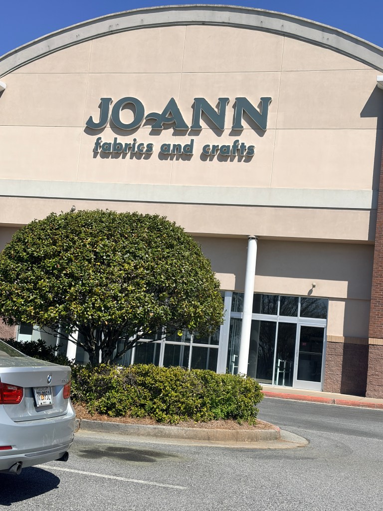 I stopped by Sewingmachine.com on the way home from a recent pet therapy visit. A former Joann store sits next door it – still vacant. The bankruptcy case is ongoing.
