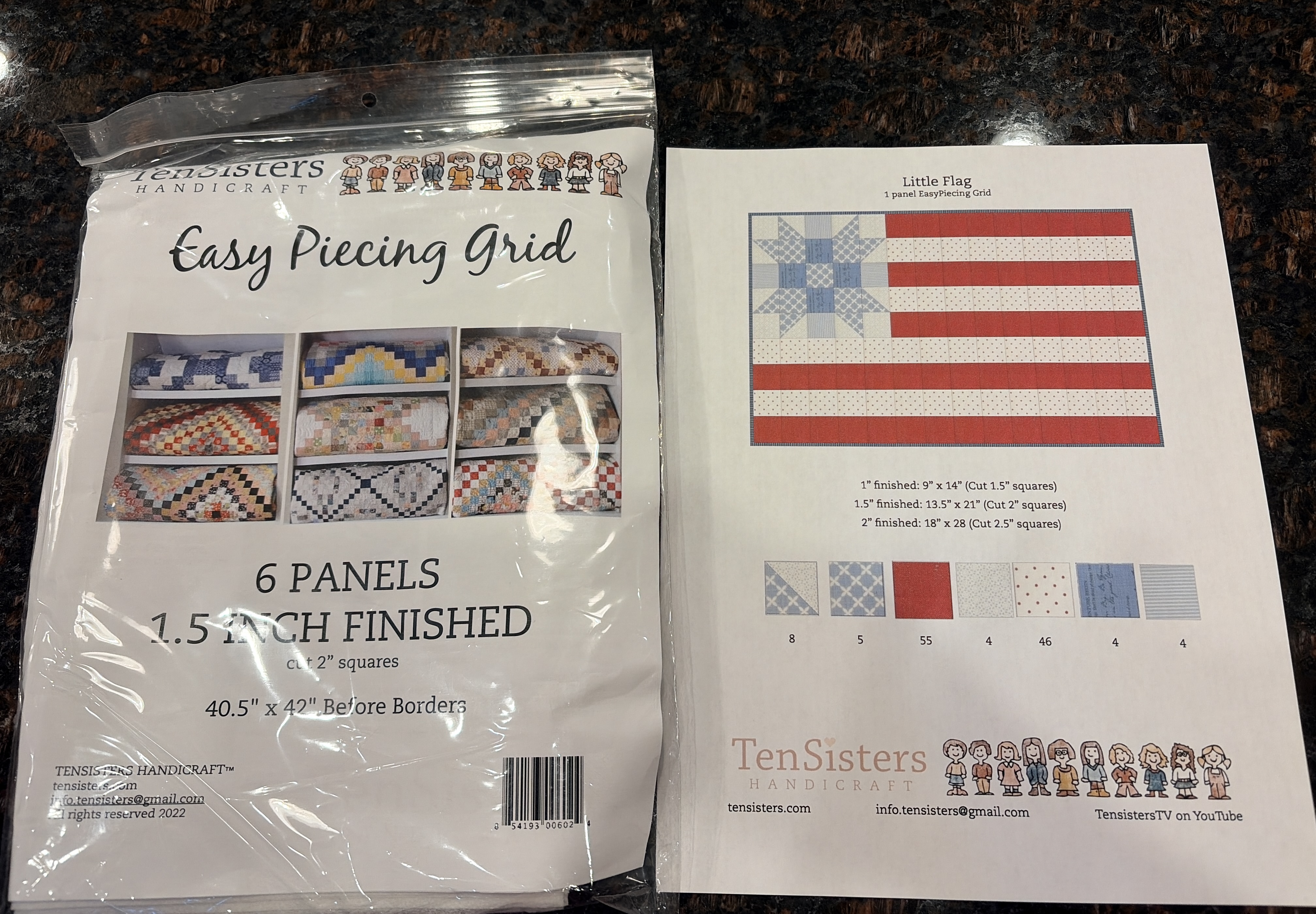 I actually have a package of the grid panels in the correct size in my stash! Carmen Geddes taught a class at Mountain QuiltFest a couple of years ago that was a lot of fun. My fall-themed wall hanging turned out absolutely adorable! The flag pattern is a free download from their website.