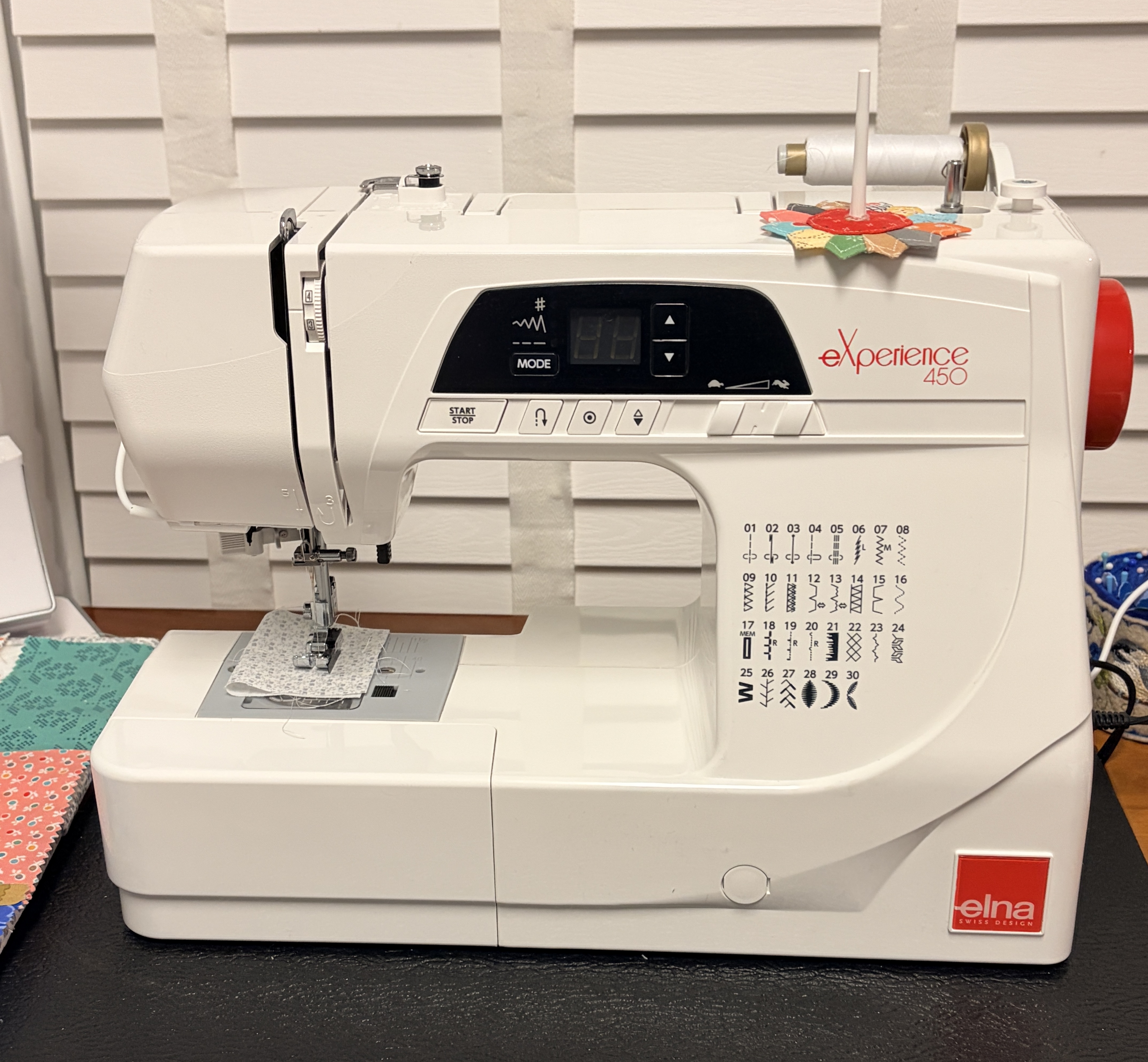 As you can see, the new CraftLAB machine has arrived. The outer box is marked Janome Canada and inside were two instruction manuals – one in English and one in French. The English manual is the exact one that came with the Elnita EC30 I purchased 4-1/2 years ago. I added the same LED light strip that I did to the Elnita EC30. The wide extension table should arrive today, as will the open toe and darning foot. This means all three CraftLAB machines will be similarly equipped.